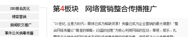 如果企业想简单了事,直接看结果,那就完全外包给我们,您可以把我们项目小组当成你企 业的网络营销部门,我们为您企业提供整体策划、执行服务。